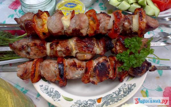 Я не поклонник обычая перемежать куски мяса на шампуре кольцами лука. Лук почти всегда подгорает раньше, чем прожаривается мясо и передает ему свой горело-прогорклый аромат.