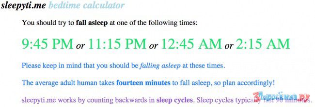 Отличный и простой ресурс, который подскажет вам, когда вам нужно лечь спать в зависимости от того, когда вы хотите проснуться. Основывается эта система на так называемых циклах сна.