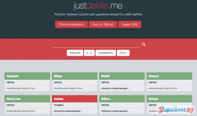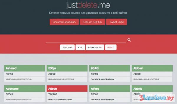 Каталог прямых ссылок для удаления аккаунта с веб-сайтов. Как только удалите все профили, можете со спокойной душой уезжать в лес!