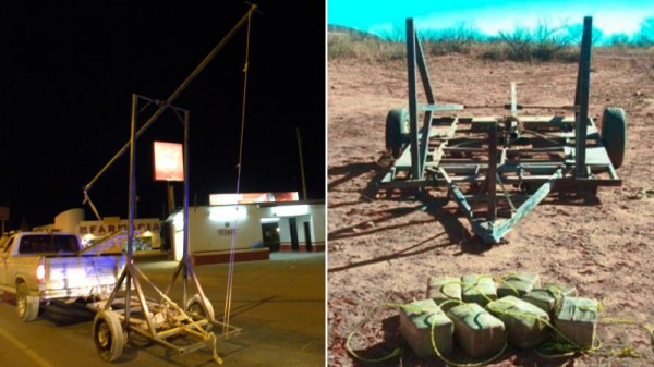 Новый творческий способ переправлять наркотики из Мексики в Соединённые Штаты изобрели участники одного из наркокартелей. Инспектируя приграничную полосу, сотрудники Пограничного патруля США заметили подозрительную активность по ту сторону ограды, разделяющей две страны. Оказалось, что катапульту, чтобы метать мешки с марихуаной через стену, построили прямо на самой стене.