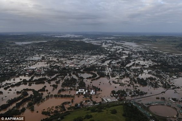 Вид затопленного центра города Лисмор, Новый Южный Уэльс, с высоты птичьего полета.