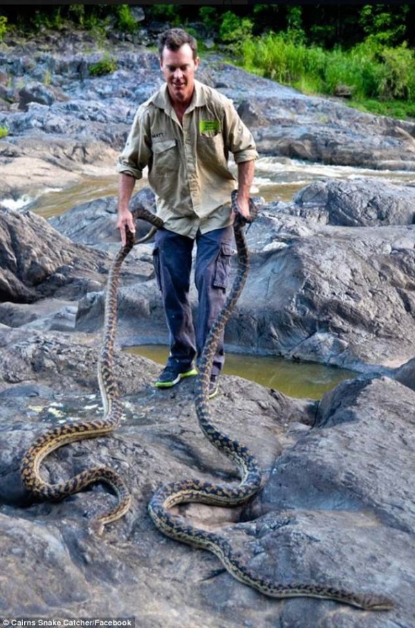 В городе Кэрнс из-за циклона, напротив, установилась жаркая погода, но это тоже вызвало приток змей в жилые кварталы. Местных жителей призывают следить за своими домашними животными, которые могут стать добычей питонов. В этой местности также поймали 2,4-метровую коричневую змею...
