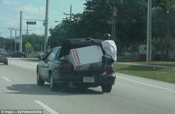 Выхода нет: коробку нужно довезти любой ценой, даже если она не влазит в багажник