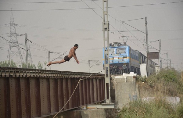 Среди индийской молодежи набирает популярность опасное развлечение: молодые люди прыгают с железнодорожного моста в канал. Особенно круто считается спрыгнуть прямо перед приближающимся поездом или выпрыгнуть из вагона движущегося состава. Они снимают все на фото и видео, затем выкладывают в сеть. Такие "подвиги" могут закончится серьезными травмами или даже смертью. Полиция уже заинтересовалась доморощенными экстремалами и направила дополнительные патрули на железнодорожные мосты.