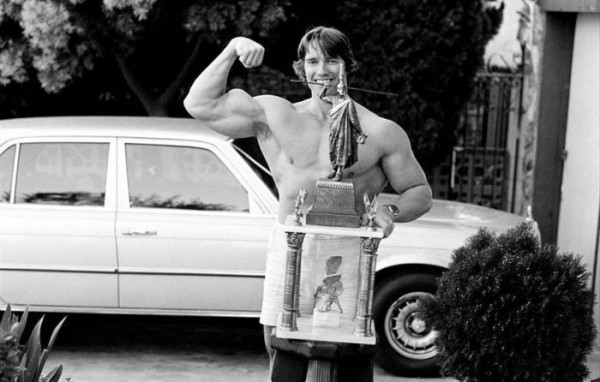 Лос-Анджелес, 1977-й год. 30-летний Арнольд Шварценеггер позирует у дома, сидя на капоте своего Mercedes-Benz S-Class W116