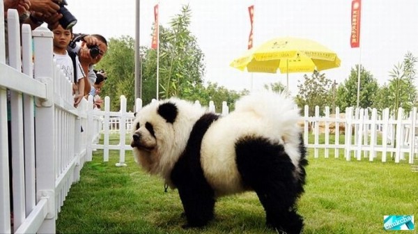 В Китае открылся парк с необычными собаками, точнее сказать раскраска у них редкая. Таким образом разводчики привлекают клиентов, ведь стоимость собак составляет 250$, а это заоблачная цена для Китая. По желанию можно купить собаку-панду или собаку-тигра, кому что нравится.