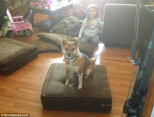 Подушки от дивана - просто спасение для собак, которым запрещают лазить на диван!
