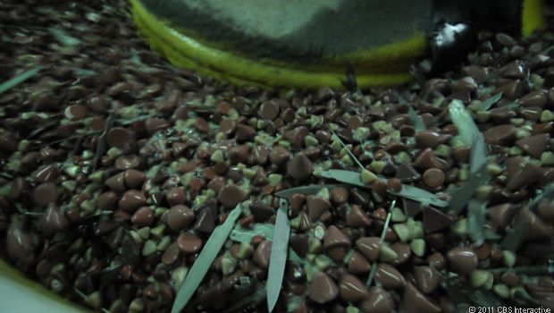Здесь мы видим контейнеры с пинцетами и зубочистками. Задача рабочих - быстро прикрепить детали к поступающим к ним по конвейерной ленте ножам.