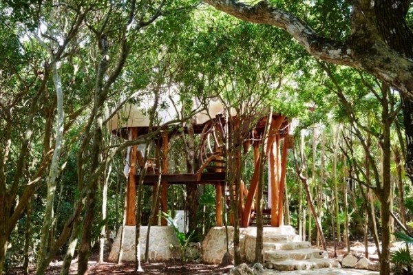 Туристам, приехавшим на отдых в мексиканский Тулум, предлагается уникальный номер на дереве в джунглях. Необычный номер является частью эко-отеля Papaya Playa Project, который находится на границе белых песчаных пляжей и леса. Домик установлен на подборках, а ветви растут через его стены и потолок. Попасть в номер с двуспальной кроватью и уборной можно по лестнице. Для строительства этого сооружения использовали экологически чистые материалы, при этом строители пытались нанести минимальный ущерб окружающей растительности. "Мы хотели проявить самое пристальное уважение ко всей флоре и фауне тропического леса", - говорит архитектор здания Эмилио Эредиа. Также рядом с номером есть небольшое помещение с отдельным входом, предназначенное для занятий медитацией.