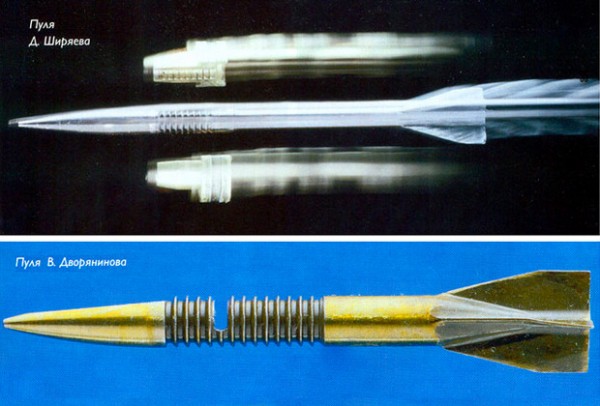 Вообще, на рубеже 1960-х советские военные, как и их коллеги из Североатлантического альянса, подумывали о том, чтобы уйти к микрокалиберным системам - четыре миллиметра и меньше - с высокоскоростными стреловидными пулями. Выгоды такого решения были очевидны: отдачи никакой, высокая настильность и легкий патрон. В США подобные разработки велись в рамках программы SPIW (Special Purpose Individual Weapon - индивидуальное оружие специального назначения), которая финансировалась Пентагоном с 1959-го по 1974 годы. У нас патронами со стреловидными пулями занимались, в частности, конструкторы Владимир Дворянинов и Дмитрий Ширяев. Ими были разработаны опытные образцы боеприпасов, а Ширяев в 1961 году представил экспериментальный автомат АО-27 для стрельбы оперенными иглами.