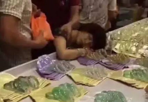 На нефритовом рынке в китайском городе Жуйли туристка решила примерить браслет. Любуясь украшением, женщина услышала от владельца магазина, что приглянувшееся ей изделие стоит 300 000 юаней (44 000 долларов), после чего начала лихорадочно стаскивать браслет. Во время этих манипуляций украшение выскользнуло из рук и разбилось пополам. Случившееся настолько шокировало туристку, что у нее развился приступ панической атаки и она надолго лишилась чувств. Прибывшие на место происшествия медики привели женщину в сознание и отвезли в больницу, где выяснилось, что ее здоровью ничего не угрожает. Обе стороны пока не договорились о компенсации: родственники туристки предлагают хозяину магазина 70 000 (10 000 долларов) юаней, а тот настаивает на цене стороннего оценщика в размере 180 000 (26 000 долларов) юаней. Хотя точно такой же браслет стоит в китайском интернет-магазине около 15 баксов.