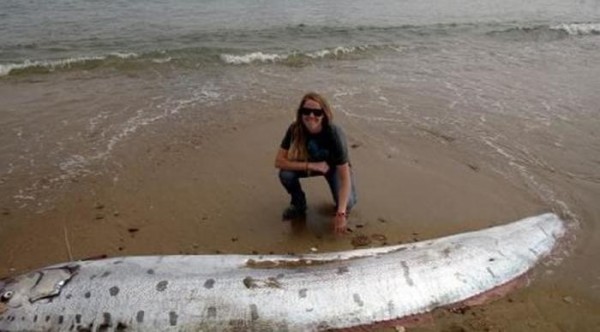 Сельдяной корольПеред вами одна из причин водобоязни. Ремень-рыба или сельдяной король вырастает до 11 метров в длину и может весить до пятисот килограммов. Данный экземпляр вынесло на берег неподалеку от Мехико, после чего большая часть жителей следующие полгода старалась держаться от океана подальше.
