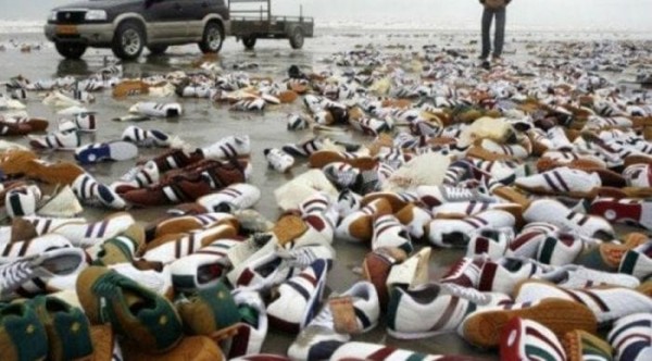 КроссовкиАналогичная ситуация сложилась в 2007 году. С борта танкера "Северный" смыло контейнер, наполненный новенькими кроссовками Reebok. Весь груз прибило к берегам Нидерландов, где в этих кроссовках бегают и по сей день.