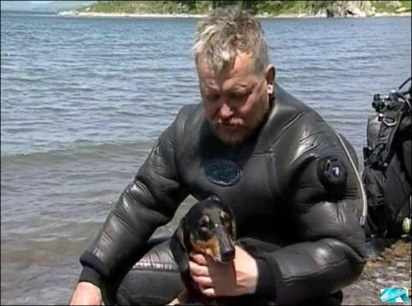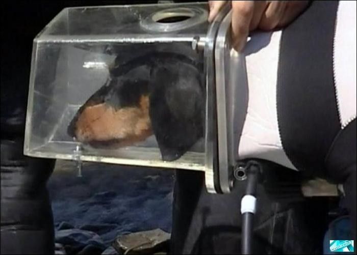 Водолаз из Владивостока Сергей Горбунов научил свою таксу по кличке Бонифаций погружаться в морские глубины вместе с собой. Идея брать таксу под воду возникла из-за того, что пёс очень переживал, оставаясь на берегу, когда хозяин уходил на погружение. Специальный гидрокостюм для своего питомца Сергей придумал сам. Интересная деталь: в шлеме предусмотрен специальный клапан для подачи кусочков колбасы. Это необходимо когда Бонифаций волнуется.