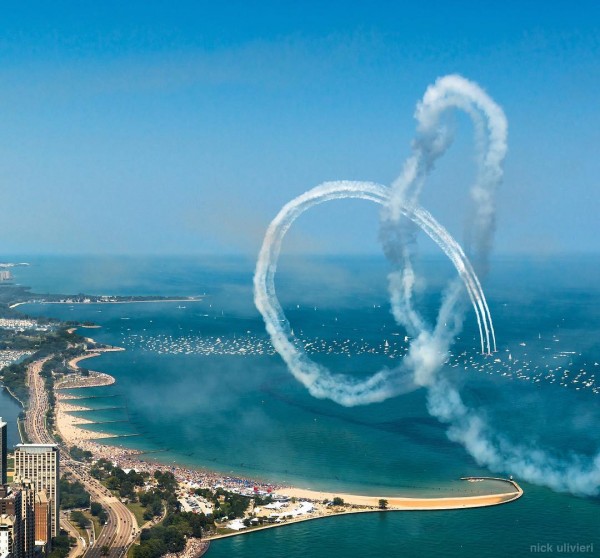 Ник Уливьери (Nick Ulivieri), успешный коммерческий фотограф из США. Круглый год он фотографирует Чикаго то с высоты птитьего полёта, то с земли. Самый интересный из его последних снимков - это отражение в озерее Мичиган городского горизонта из небоскрёбов. Игра света и тени создала сюрреалистическую картину на водной глади - удлинённый контур башни John Hancock Center. Необычный эффект был достигнут на этапе постпродакшн, когда Ник просто перевернул снимок на 180 градусов.