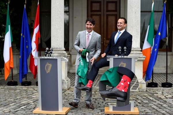 Премьер-министр Ирландии Лео Варадкар встретил главу правительства Канады Джастина Трюдо в красных носках с канадскими символами