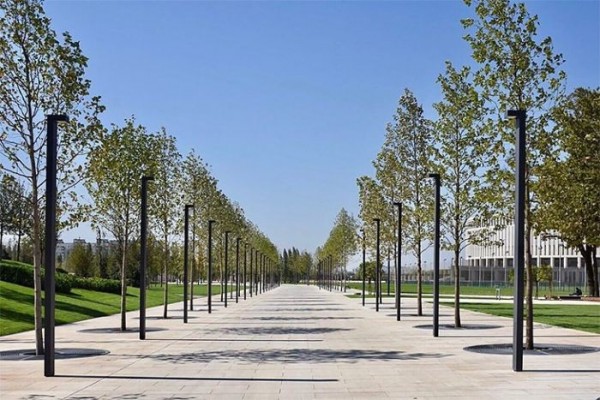 Парк занимает площадь в 22 гектара и поделен на 30 тематических площадок, среди которых летний амфитеатр, смотровая площадка, терраса, фонтан-каток, детская площадка с песочницами, веревочный парк, музыкальный и водный лабиринты, скейт-парк, скалодром и площадка для стрит-бола.