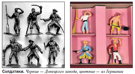 И тут вдруг выяснилось, что игрушки моего детства - банальный плагиат, перепечатка с солдатиков американской компании Louis Marx and Company. Своих первых пиратов под названием "Миниатюрные скульптуры Маркса" американцы выпустили еще в 1953-м. Чуть позже, в 1956-м, пресс-формы для изготовления солдатиков были переданы на завод Маркса Charmore (Шармо) в Германии. В середине 70-х годов пресс-формы купило и советское Торгпредство. Фигурки выпускают и по сей день - в Беларуси.