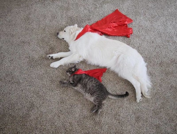 Вы всё ещё думаете, что собаки и кошки злейшие враги? Ну, в основном так оно и есть, при виде собак кошки обычно бегут так, что мелькают их розовенькие пяточки, а собаки несутся вслед за ними, но эта история вовсе не о разногласиях этих животных, а, наоборот, о крепкой дружбе.