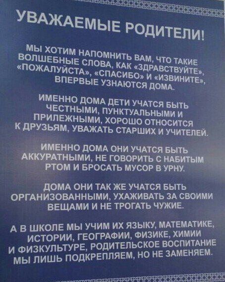 Учителя одной из школ повесили вот такую информационную табличку для родителей своих учеников.