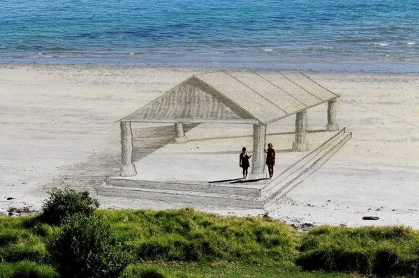 Пляж в Новой Зеландии, группа художников 3DSD продемонстрировала свое искусство. Одни из самых недолговечных творений. Рисунки на песке.