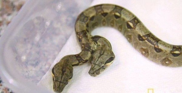 У заводчика змей во Флориде родился удав с чрезвычайно редким генетическим дефектом. У змеи две головы, два сердца и две системы пищеварения. По словам ученых, она похожа на двух близнецов , объединенных под общей кожей. Подобные животные редко доживают до старости, однако некоторым удается дожить до взрослого состояния.