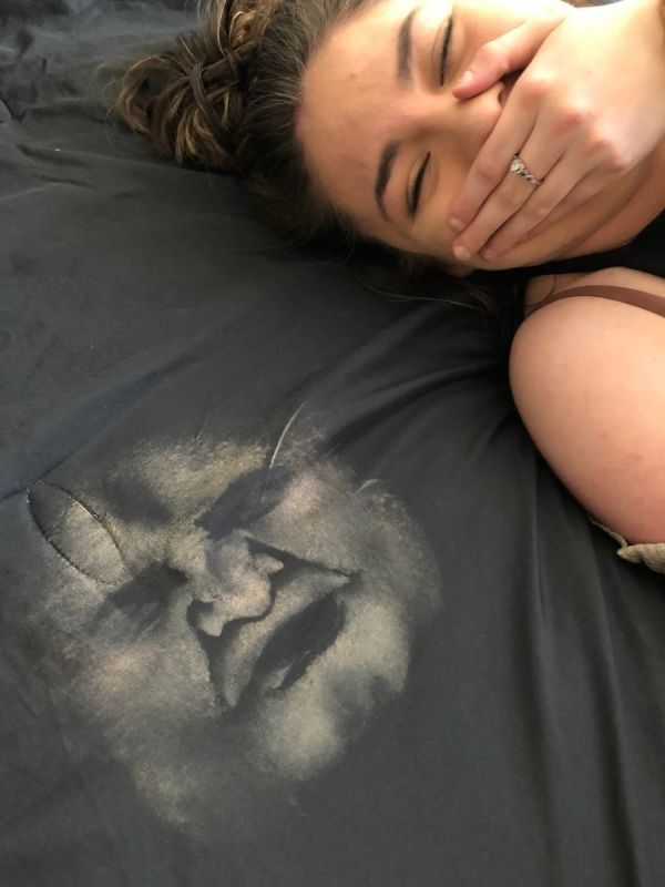 Некоторые девушки используют так много косметики, что могут буквально оставлять отпечатки своего лица. Именно так и произошло в этом забавном случае, когда лик отпечатался на простыне.