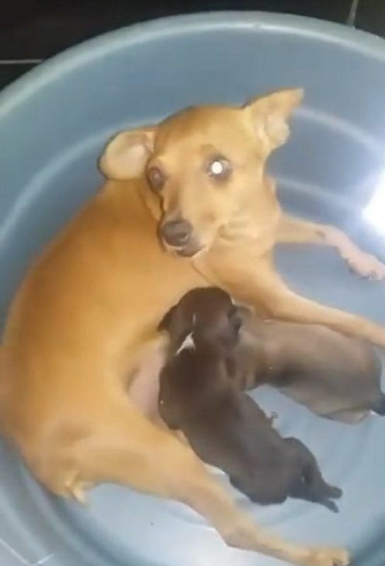 Когда они прибыли в приют, выяснилось, что из-за пережитого у собаки-мамы пропало молоко и она больше не могла выкармливать кроху. Пришлось в срочном порядке искать кормящую собаку, которая могла бы помочь этой необычной семье. К счастью, собаку нашли довольно быстро и щеночку не пришлось голодать.