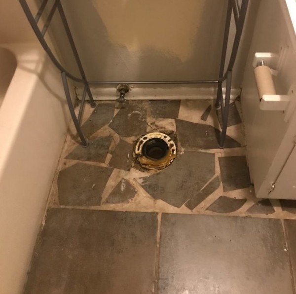 "Вчера я рассталась с парнем. Пока я спала, он разобрал и украл мой туалет", - заявила shelblikadoo, приложив фотографию дыры в полу в качестве доказательства.