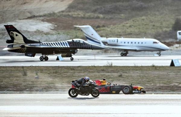 Во время фестиваля авиации, космоса и технологий, проходившем в аэропорту Стамбула, состоялась эпическая гонка. Суперкары Tesla P100DL, Aston Martin New Vantage и Lotus Evora GT 430, мотоцикл Kawasaki H2R, автомобиль Формулы-1, частный самолет и истребитель померялись силенками на дистанции 400 метров. Победа досталась мотоциклу Kawasaki, вторым пришел авто F1, третьим - истребитель F-16.