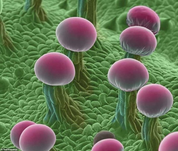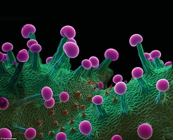 Изображения, сделанные профессором Тедом Кинсманом из Рочестерского технологического института, показывают марихуану в феноменальной детализации. Подготовка образцов занимает несколько часов. Их полностью высушивают, а затем фотографируют в вакуумной камере с помощью сканирующего электронного микроскопа. На каждый снимок уходит около четырех минут.