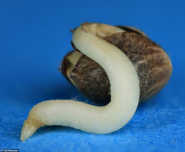 На снимке - семя каннабиса после трех дней инкубации при температуре 21º на влажном бумажном полотенце в темноте. Оно готово к переносу в почву или гидропонную систему.