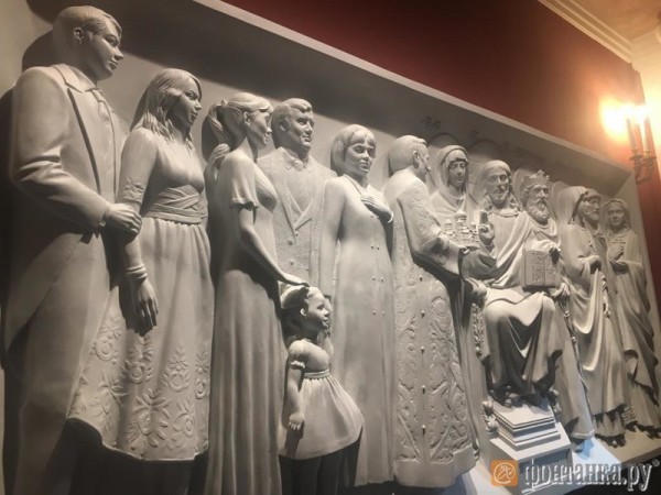 Вячеслав Заренков, вероятно, решил увековечить свою фигуру. При строительстве храма на севере Петербурга он, видимо, попросил архитекторов водрузить похожего на себя человека и членов своей семьи на барельеф церкви рядом с Иисусом Христом.