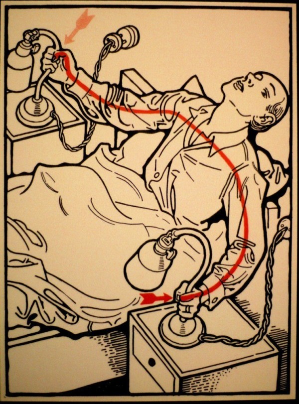 В данном немецком издании просто перечислены варианты смерти живого существа, как человека, так и животного, от электричества, и хотя некоторые из них абсолютно просты и понятны (например, замена лампочки мокрыми руками), есть и такие, которые выглядят действительно чудно. К примеру, изображение, на котором парень мочится с моста.