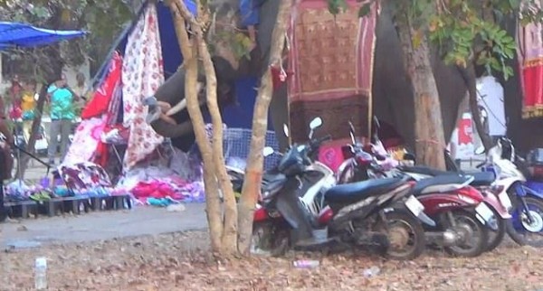 На деревенской ярмарке в Таиланде 19-летняя Ничанат Манучам фотографировала слона, когда животное внезапно рассвирепело и взяло девушку в заложницы. Дело в том, что слон обвил хобот вокруг ноги Ничанат и стал крушить все на своем пути. Девушка, которой пришлось висеть возле бивней и спиной ощущать падающие обломки, уцелела и даже выступила в защиту своего обидчика.