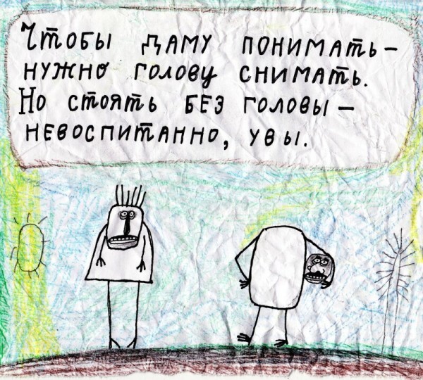Необычный человек Павлик Лемтыбож (он же Павел Власов, питерский поэт, музыкант, барабанщик и автор текстов группы "Сказы леса") помимо всего прочего рисует занятные иллюстрации к собственным стихотворениям. Получается иногда абсурдно, иногда сатирично и злободневно, порой трогательно, но всегда ярко.