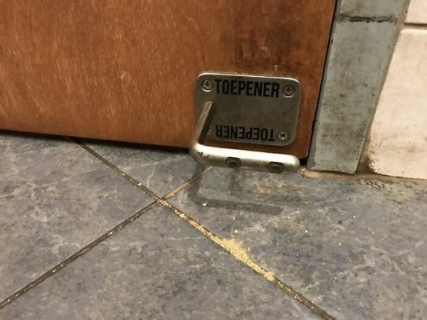 Для людей, боящихся мириад бактерий с дверных ручек, придумана специальная ручка, с помощью которой можно открыть дверь ногой