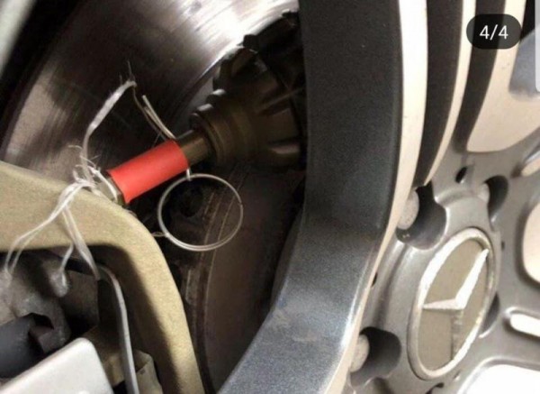 В Москве утро у бизнесмена началось не с кофе, а с вот такого вот сюрприза с красным колпачком в колесе. Поскольку это страйкбольная растяжка, то "гранату" прикрутили либо полные дилетанты, либо гражданину оставили предупреждение.