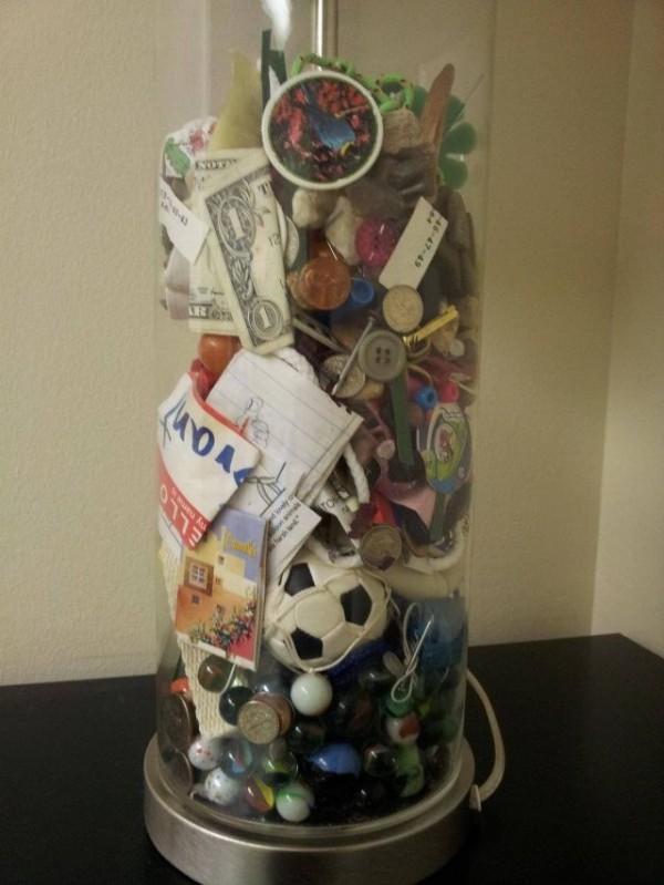 Молодожен под ником justgrant2009 показал подарок, полученный им от матери на свадьбу. Презент до слез пробрал как самого жениха, так и невесту и всех присутствующих на торжестве. С виду это обычная лампа, но изюминка кроется в ее подставке. Оказывается, родительница собирала вещи сына, которые доставала перед стиркой из карманов, и бережно хранила на протяжении многих лет. А когда парень решил жениться, мать сделала ему интересный светильник со всем добром из детства.