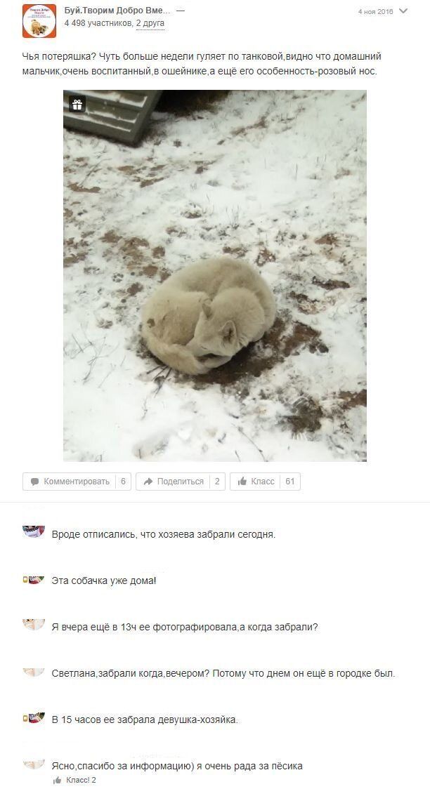 Хозяева откликались на сообщения в сети, забирали пса, тот снова уходил. После двухлетних скитаний собака окончательно стала никому не нужна и однажды неравнодушные люди обнаружили её в довольно удручающем состоянии.