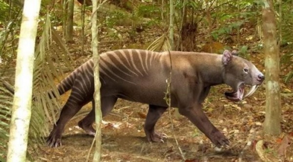 ТилакосмилСумчатый саблезубый тигр, с длинным телом и мощными лапами. Тилакосмил был прекрасным, очень быстрым и сильным охотником. Криптозоологи полагают, что эти полуводные хищники до сих пор сохранились где-то в Южной Америке: местные жители время от времени заявляют о встречах со странными, не похожими на представителей кошачьих зверями.