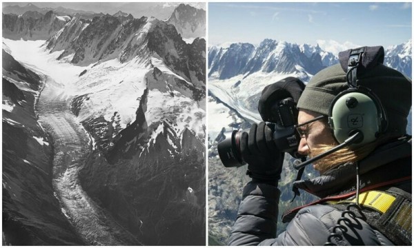 Группа ученых из швейцарского Университета Данди решила повторить путешествие пилота и первого аэрофотографа Вальтера Миттельхольцера, который в 1919 году пролетел над горой Монблан на биплане, сделав снимки с воздуха. Для этого команда отыскала точные места, из которых пилот фотографировал альпийские пейзажи, и воссоздали его снимки.