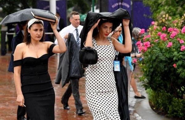 Тысячи человек, невзирая на дождливую погоду, облачились в свои лучшие наряды и отправились на ипподром Флемингтон Парк в прошедшую субботу, чтобы принять участие в Melbourne Cup Carnival. Четырехдневный фестиваль, как предполагается, посетит в общей сложности 300 000 человек. Ожидается, что в течение следующих четырех дней жаждущим гостям будут поданы колоссальные 20 000 бутылок шампанского. Некоторые дамы, которые не могли дождаться, чтобы начать праздник, были замечены поглощающими пиво в 11 утра. Кавалеры от них не отставали и к концу дня ползали на коленях, дрались друг с другом и играли в крикет с самодельными битой и мячом.