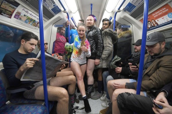 В воскресенье прошла ежегодная международная акция в метро без штанов "No Pants Subway Ride".