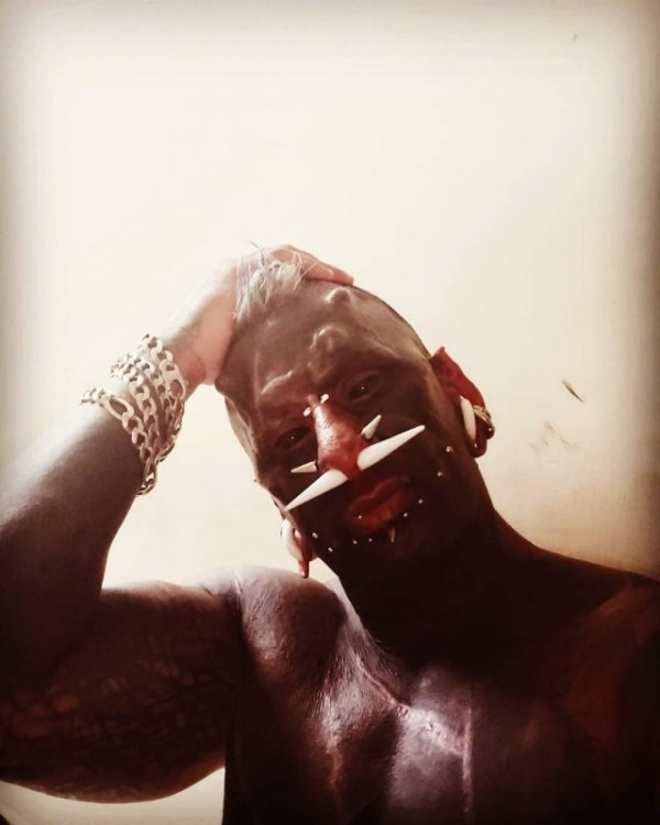 В бразильском городе Сан-Паулу живет порядочный и богобоязненный христианин по имени Микель Фаро ду Прадо. Правда, он немного не похож на глубоко верующего человека. Наверное из-за того, что 44-летний мужчина носит стальные рога, а все его тело, включая глаза, покрыто черной краской. За его страшную внешность он получил прозвище "Человек-Сатана". Удивительно, но Микель сказал, что он не стремится быть похожим на дьявола внутренне... Рога, тату и пирсинг - это всего лишь хобби. Сам бразилец не забывает посещать церковь, более того - он проповедует на улицах и в Сети. Что ж, давайте посмотрим на этого праведника.