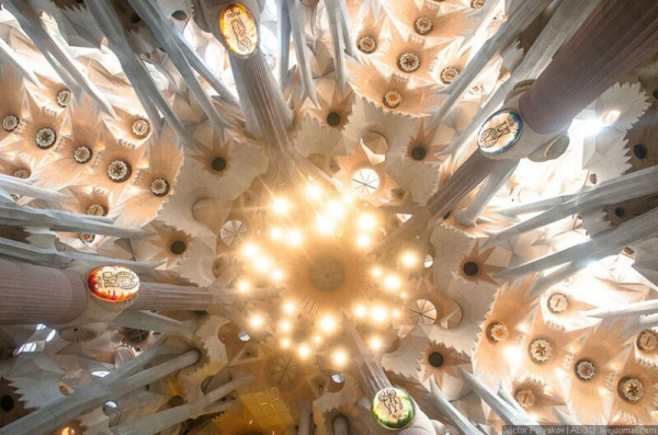 По задумке архитектора, оказавшись в Саграде, человек должен ощущать себя среди стволов деревьев, а, запрокинув голову вверх, увидеть лучи солнечного света, пробивающиеся сквозь густую крону.