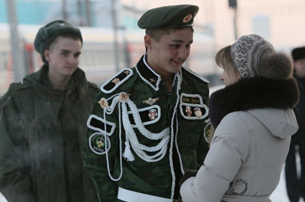 Девушка встречает на вокзале уволенного в запас солдата, 2011 г.