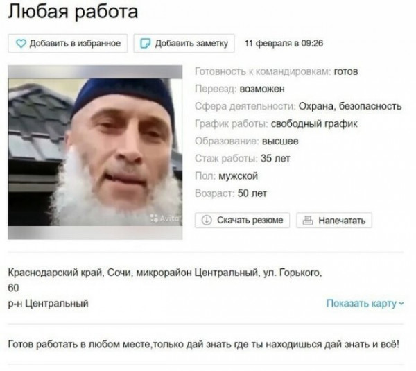 Работу через Интернет сейчас ищут многие - это действительно удобно, еще и резюме для потенциального работодателя выложить можно. Однако многие относятся к составлению резюме крайне безответственно. Поэтому получаются подобные фейлы. Однако выглядит это вполне забавно.