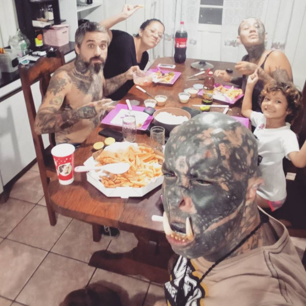 Татуировщик Рико Ледесма из Бразилии потратил последний год на модификацию тела. Татуировки покрывают 85 процентов тела Рико, у него также есть восемь подкожных пирсингов, наращённые клыки вместо зубов, расщепленный язык и татуированные глазные яблоки. Его 25-летей жене и маленькой дочке папа-орк нравится.
