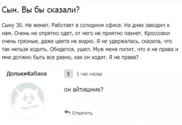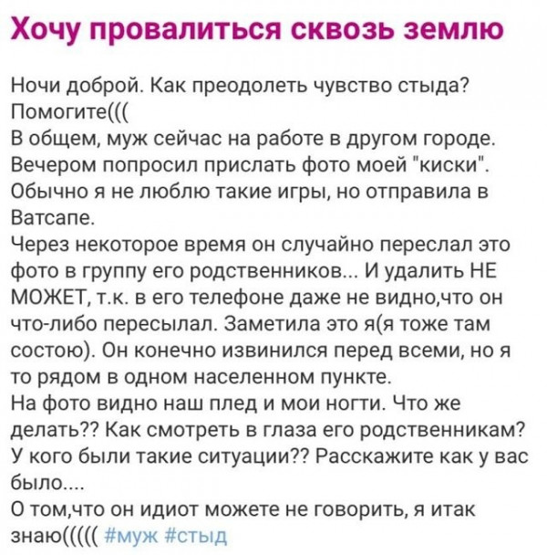 Ну что же, настало время для безумных история с женских форумов, где дамы ищут мудрости у своих коллег по несчастью. Хотя честности ради надо отметить, что туда частенько забредают и мужчины, которые тоже не блещут... логикой. Итак, давайте посмотрим, что они поведали нам сегодня.